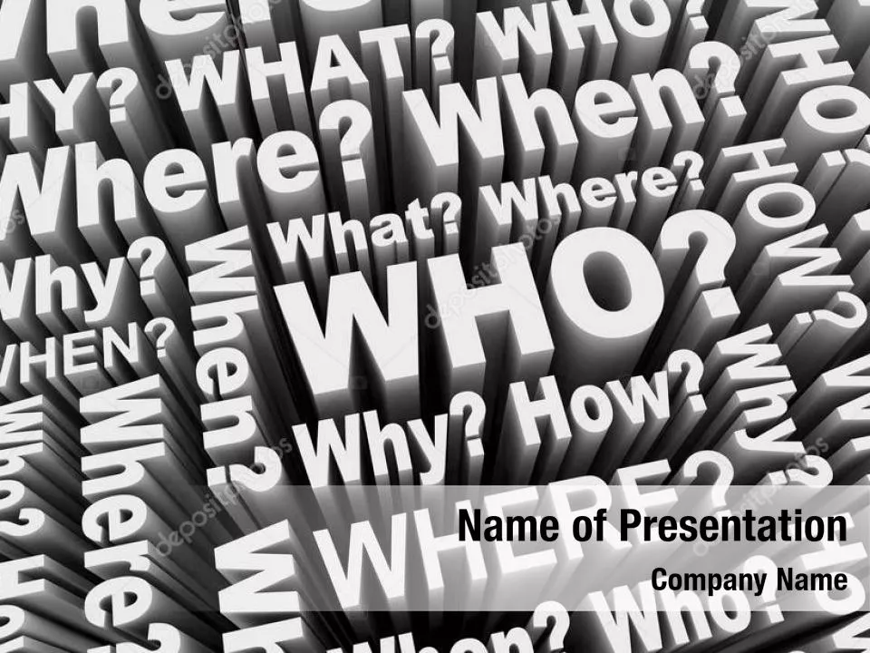 Boost your PowerPoint Presentations with the Who What Where When Why theme. Our Who What Where When Why PowerPoint Templates and Who What Where When Why PowerPoint Backgrounds are pre-designed intelligently-built Royalty Free PowerPoint presentation templates used for creating stunning and amazing presentations and reports.
