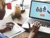 Woman Using Laptop to Connect Social Network PowerPoint Template